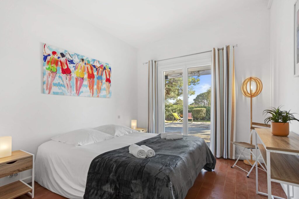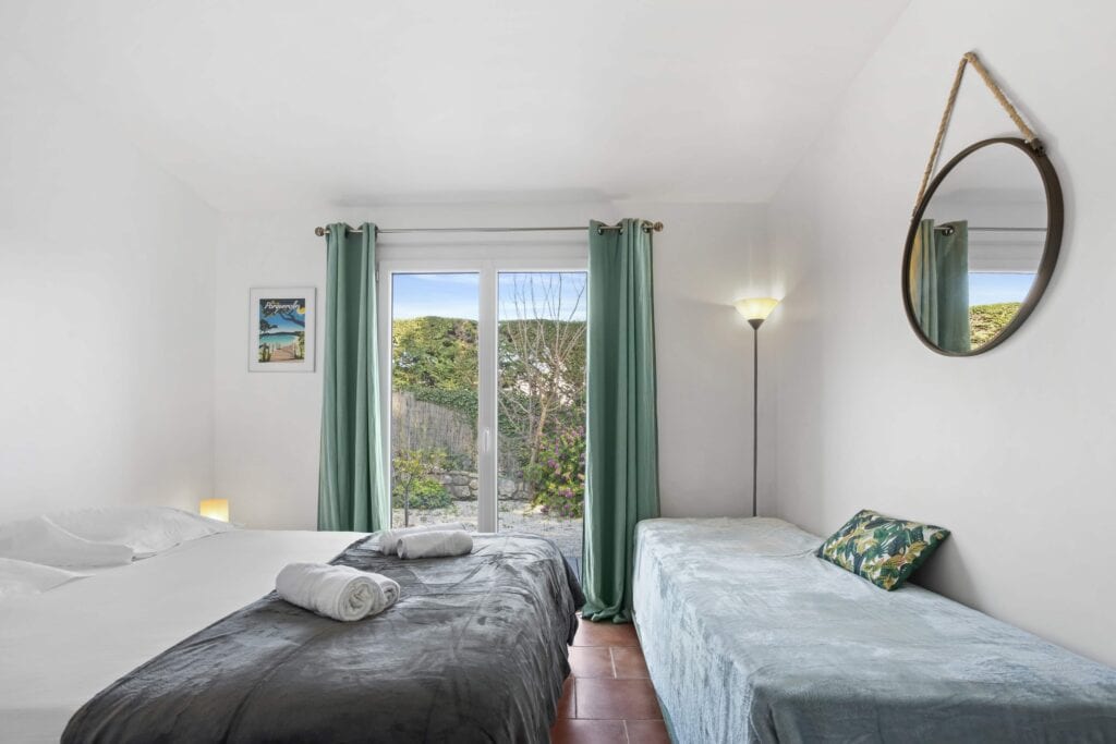 La villa Artemis (rénovée en 2021) est composée de 4 chambres (15 m2 environ) à grand lit (160×200 cm) de très bonne qualité (datant de 2021) et séparable 80×200 cm, donc 8 couchages.